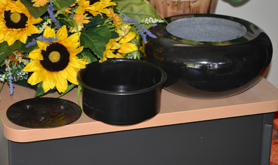 Nos vasques funéraires en granit peuvent être posés sur vos monuments funéraires, devant vos cases de columbarium ou cavurnes.